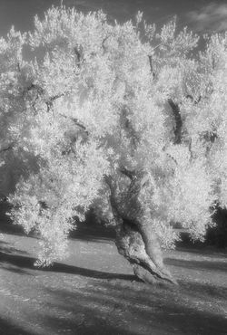 "There are olive trees in a certain corner of the Mediterranean more than a thousand years old. Still producing olives. Definitely - "WAY OLD GEEZERS!" The passing Centuries have sculpted them into an unimaginable variety of forms. Tortured. Graceful. Imposing. Whimsical. I chose to interpret them in black and white infra-red to emphasize the contribution of light and shadow to these incredible examples of Nature's sculpture."